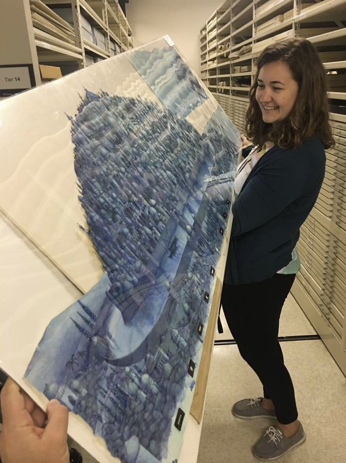 "Visited the Academy archives today to sign some forms in relation to donating some Song of the Sea artwork and ended up spending hours just in awe of the original artwork from the Thief and the cobbler that they are cataloging currently . Just mind boggling and awe inspiring stuff . I'm so amazed I got to see the originals after so many years squinting at fuzzy vhs copies and online restorations . It felt like visiting The Book of Kells, this is surely the most elaborate and intricate hand drawn animation ever created - I'm so glad the art is getting the academy's careful curation after so many years in the wilderness."